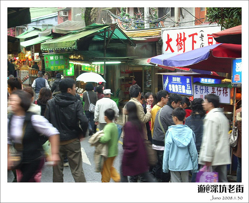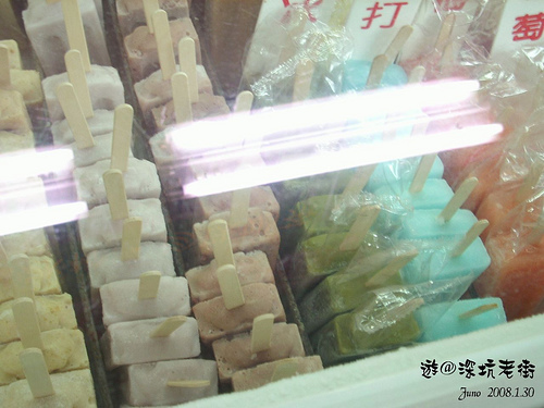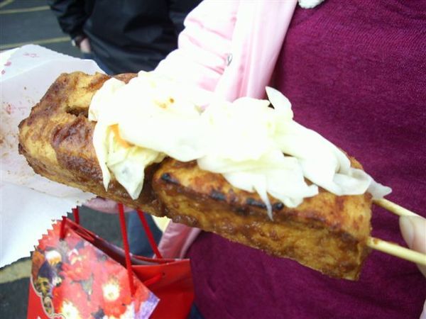 深坑老街與其他地方的老街其實差不多,只是它的臭豆腐很有名,有烤的、煮的,有麻辣的或其他烹調方式的,還有很神奇的豆腐冰淇淋,但Juno和byebye卻不想吃這種太奇特的東西,我相信它是不難吃的,因為也看見不少人在吃,有興趣的人倒不妨試試。