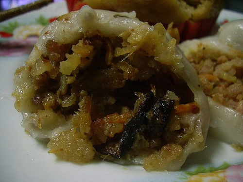 下午茶點是來自屏東的鹹圓粄,外頭的皮有原味的和芋頭的,芋頭的就是多了股芋頭的香味,以及香菇。發粿一顆很大,所以也沒吃完,剩下的一半當明天的早餐好了。還有剩,帶了一些回來,但是JUNO不想自肥,所以給了親愛的鄰居四元。