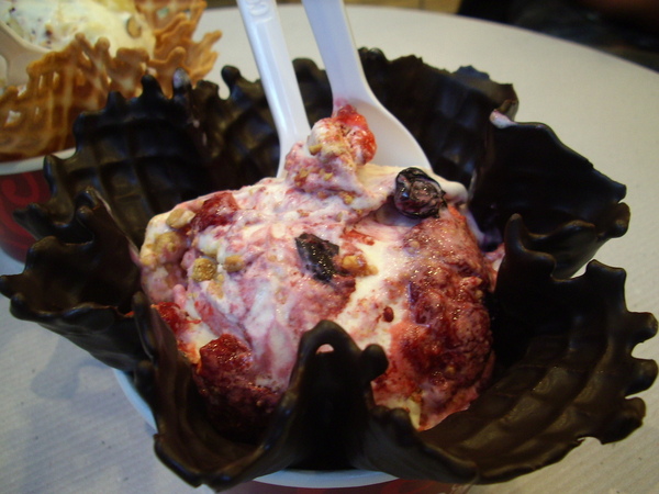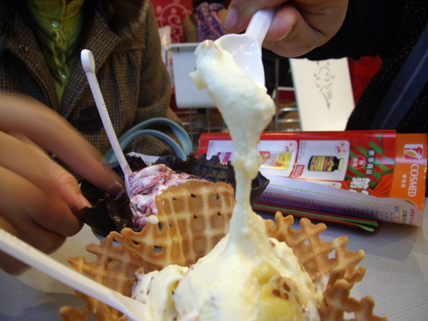 這兩種冰淇淋吃起來的口感都很不錯,價錢偏高些,要不是買一送一,平常應該不會吃吧。您看看下面這張照片,應該可以想像的到冰淇淋吃起來如何吧,呵呵。