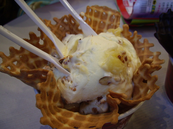 很好笑的名稱,我們為了卡滋卡滋而卡茲卡滋。香蕉味道香濃,杏仁味倒是不明顯,脆皮是原味的。兩桶中杯的冰淇淋,五個人分剛剛好。