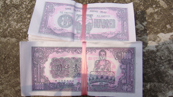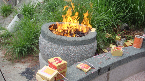 因為紙錢數量很多,所以這個爐都裝不下了。
