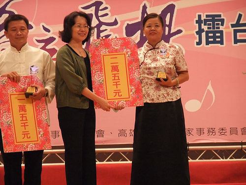 小弟弟跑來跑去動不停,奶奶只好跟著他跑,難得坐下來喝個水,衣服很漂亮吧!冗長的歌唱比賽,沒辦法~很多人聽起來都差不多,JUNO不是專業的評審,聽不出來啦。今天看見最年輕的參賽者,可惜沒得獎。歌聲很年輕的老奶奶指揮很認真啊!評審針對團體組講評時,說得一針見血,優缺點都講出來了。辛苦的評審辛苦的主持人這張照片很好看!優勝者受獎回到家晚間七點多了,明天繼續加班。