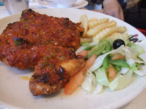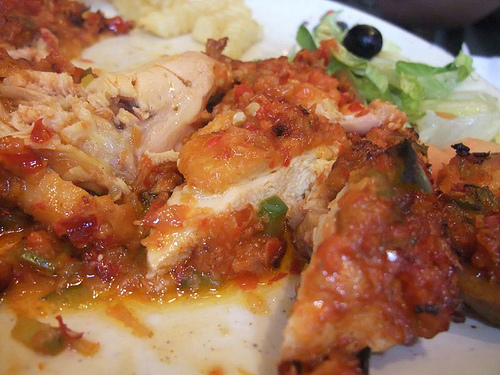非洲雞好吃,和微酸的配菜一起食用,絕配!