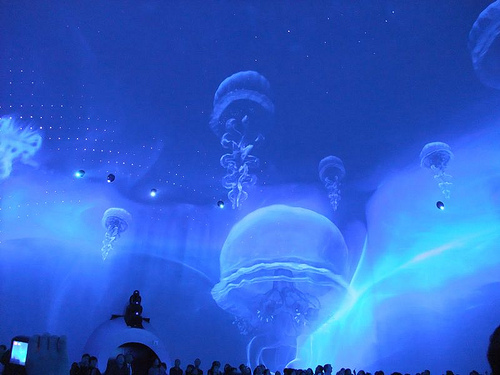 威尼斯人有免費的接駁車到新濠天地,360 度天幕劇院是其特色,「龍騰」講述四海龍王護送龍珠的故事,全劇配以 LED 燈及高科技演出。大廳有美人魚可以看,雖然只是影像而已。