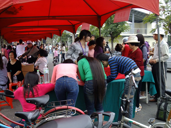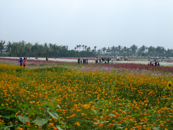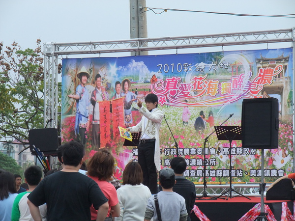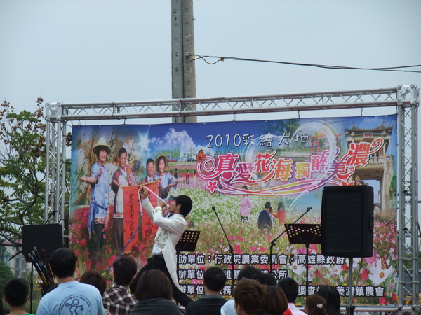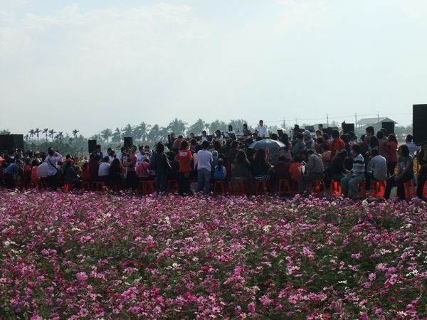 每天好像有不同的活動,今天(正月初一)老天爺賞臉,是個出遊的好日子,花田邊的攤販更多了,遊客也更多了,也多了一些表演節目,所以在看花、拍照的同時,還可以欣賞節目喔,對了,還可以摸彩,只是可惜沒摸到最大獎-桌上型電腦。