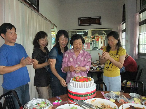 最近一直在下雨,出門非常不方便,趁著雨稍停的片刻,拍了上面這張照片。大家來幫外婆慶生囉,慶祝74歲的生日,我們調皮地將蠟燭排成47歲發現原來大家都愛吃方師傅來張小美女圖