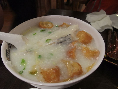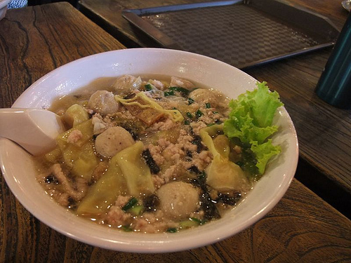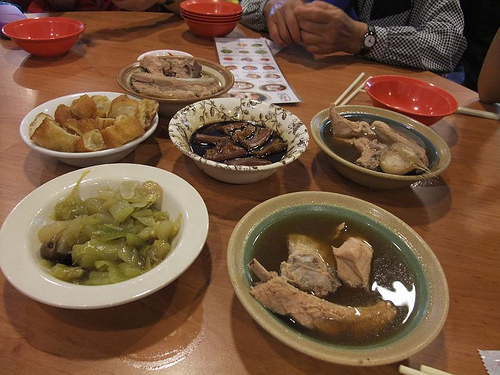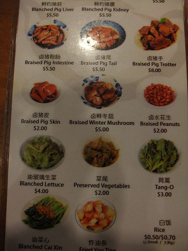 豬腸、肉骨茶、煮得很軟的青菜、油條