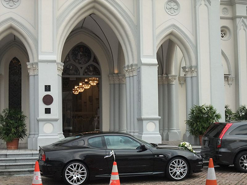 坐公車去看白天的贊美廣場,有人結婚耶,大家都穿莊重的黑禮服。