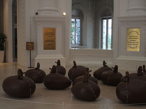 100/9/12新加坡美術館就在飯店附近新加坡國家博物館博物館內部中庭擺設中午要到機場,早上只能利用一點時間逛飯店周邊。新家坡的房子好整齊劃一等地鐵中,這時候已經變成有椅子的時候就儘量坐下。陪伴我們四天的行李,大家的行李其實都還滿輕的。前往第一航廈DAY4:新加坡美術館→新加坡國家博物館→樟宜機場