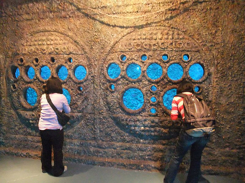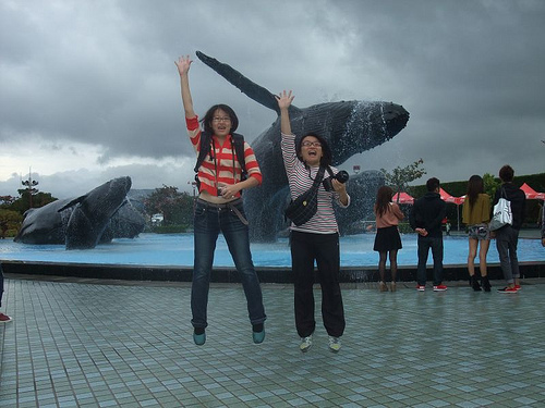 沒想到突然下了場大雨,為順利前往另一個館,只好買了便宜的雨衣,但褲腳與鞋子還是溼了,天空真不作美,沒關係,我們會自得其樂。