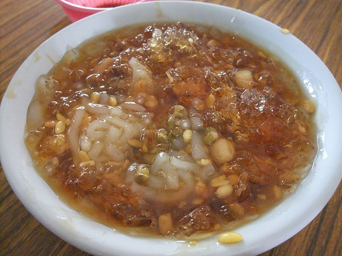 來到這裡一定要吃綠豆蒜,只可惜globe遍尋不著父母推薦的店家,就在沒有解答的情況下,我們走進路口一家看起來挺令人安心的店(這是什麼形容?)。「老闆,一個招牌綠豆蒜與一個粉條綠豆蒜。」真的...好好吃~招牌綠豆蒜可吃到粉條、芋頭、粉圓等食材,點招牌就沒錯了。謎之音:那...globe為啥要點粉條綠豆蒜?就是他特別愛粉條啊~(不負責亂講)