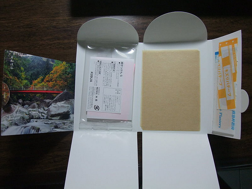 日本岐阜縣美濃市的行銷品,裡面藏玄機。打開一瞧,咦?右邊是OK蹦?是的。還有吸油面紙,真是太神奇了這個組合。