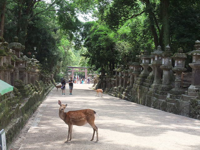 奈良的鹿很野生啊,路邊都可看到,所以也常有鹿被車子撞到的意外發生。