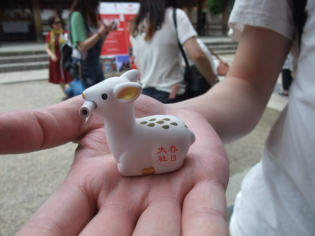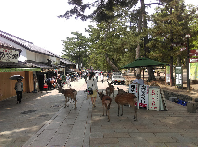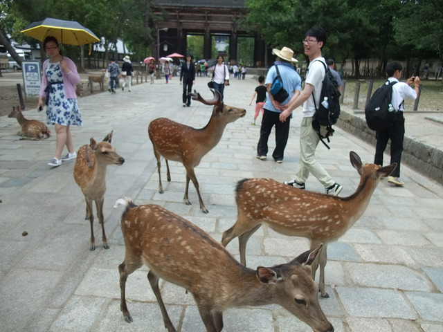來到這邊一定要來餵鹿,當你從小販手上接過仙貝,牠們馬上就會上前把你圍住,我的外套沾滿鹿兒們的口水,仙貝一下子就發完,其實就是被搶光了,但實在太有趣,朋友們來奈良要來跟鹿玩玩啊!