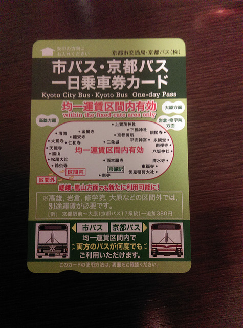 結束奈良行程前往京都,眼看時間還早,就先到飯店把行李丟著,出門逛街去。這時候就要拿出無敵的京都巴士一日券,如果一天搭三趟以上的公車必用這張。