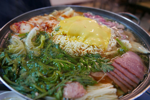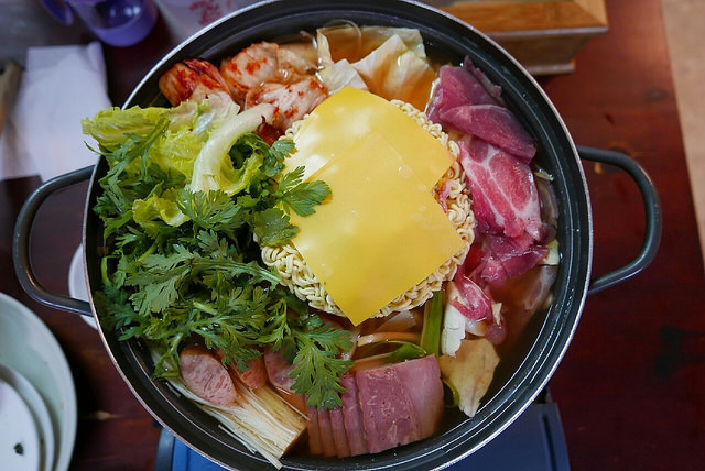 到鹽埕埔站還車後,飢腸轆轆的一群人,到七賢路上的「老韓家」韓式料理吃飯。看到這麼多客人,想必一定很好吃,只是因為有韓式烤肉,空氣還是難免聞到烤肉味。部隊鍋看起來就很美味,只是等候的時間有點久,差一點趕不上看電影。