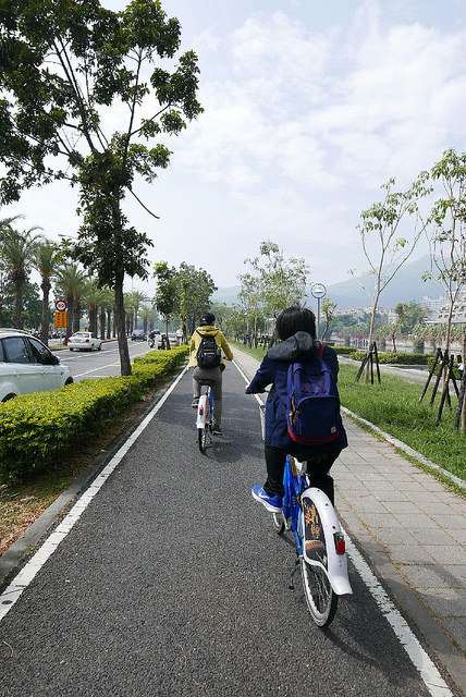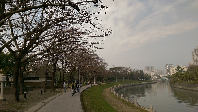 天氣大好,適合騎腳踏車,於是和好友們一起租借高雄市公共腳踏車,沿著愛河沿岸慢慢地騎。