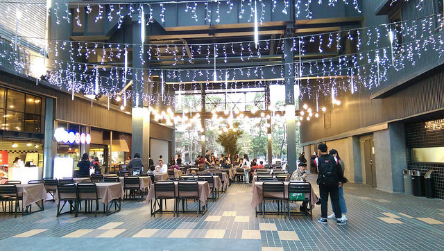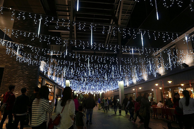 吃飽喝足後,到台鋁影城看電影「丹麥女孩」,椅子很舒服~ 到了傍晚,廣場會亮起閃閃的燈泡。