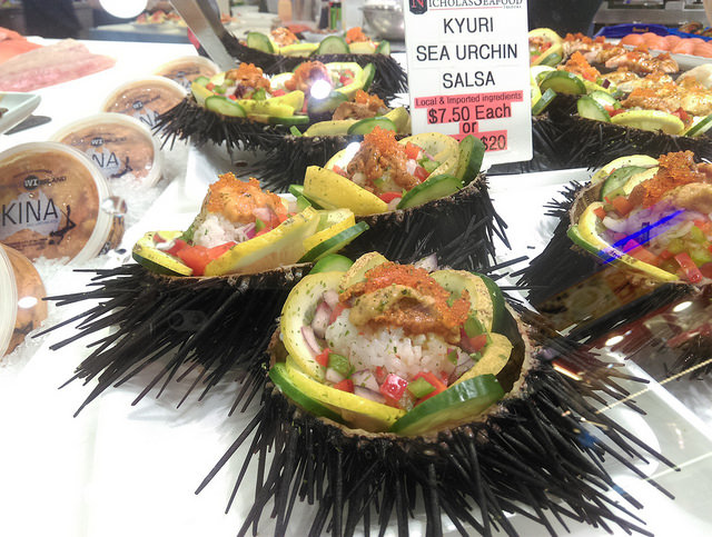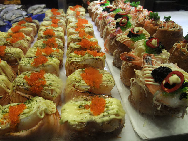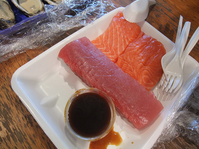聽說必吃的是生蠔,我們也嘗試了,加一點檸檬提味,生蠔吃起來的腥味並沒有想像中的重。看到活跳跳的海鮮真是令人開心,生魚片一定要來一盤的啦!還吃了人生中第一口海膽。