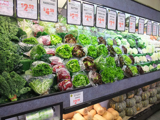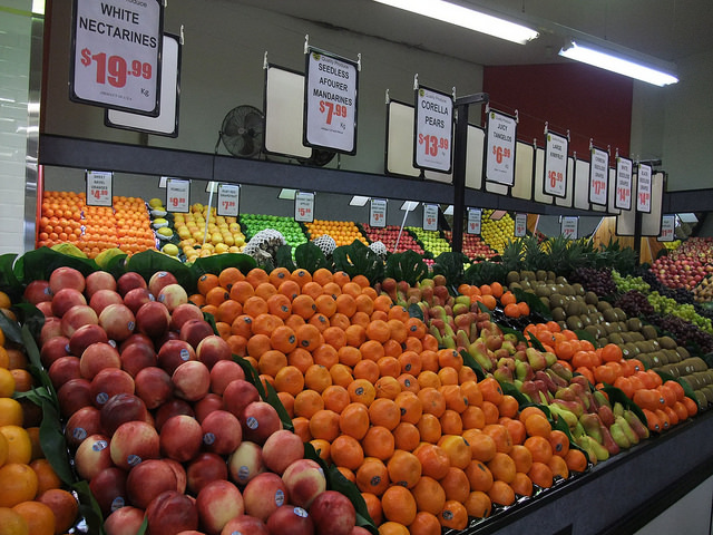 魚市場有一區蔬果店,色彩鮮豔的蔬果排列井然有序,令人賞心悅目。
