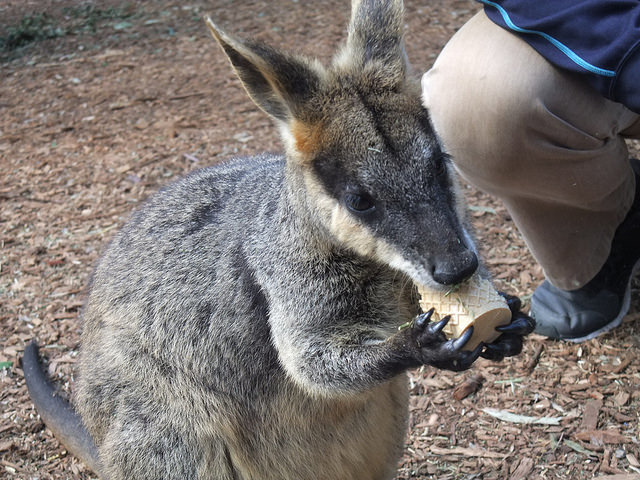 結束大喀海鮮的行程後,搭火車前往Featherdale動物園,這裡可以和袋鼠及無尾熊親近,也有很多未見過的動物。無尾熊懶懶的,袋鼠挺活潑的,也有看到育兒袋中的袋鼠探頭或露出尾巴。