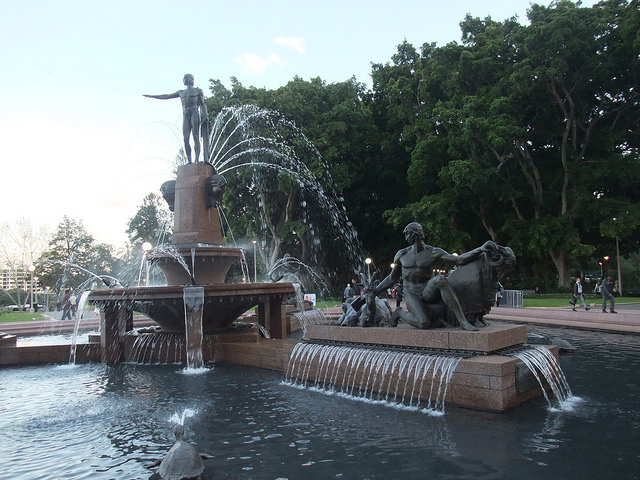 亞奇柏德噴泉 (Archibald Fountain),以希臘神話為主題的噴水池象徵著戰爭與和平。中間的雕像是阿波羅神,祂所指的是東方,正是太陽升起的方向,烏龜代表人類。