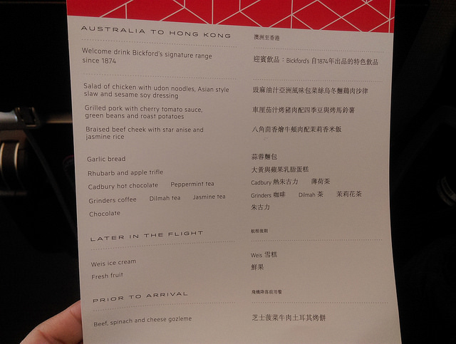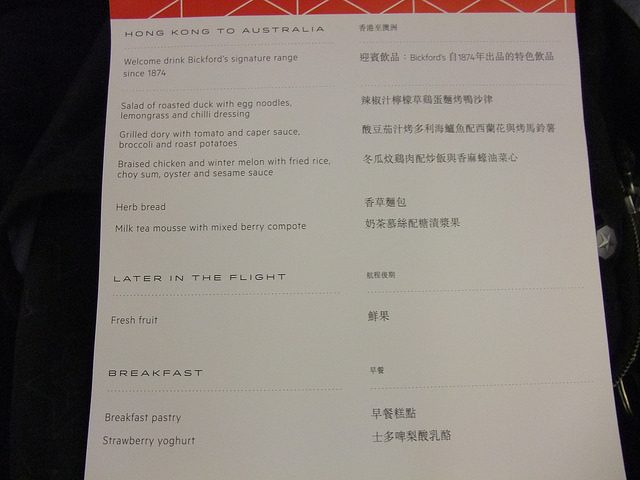 首次搭乘澳洲航空(Qantas)就要在機上過夜,坐在椅子上不太好睡,還好飛行時間只有8小時,但已是我搭乘最長的飛行時間了。
