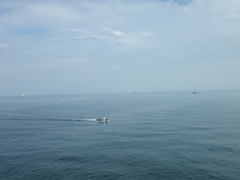 船逐漸靠近高雄,原本空無一物的海洋,突然變得好熱鬧。