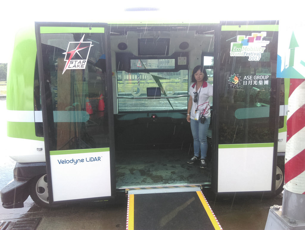 場外有智慧無人駕駛小巴試乘,花了一段時間排隊終於搭上。