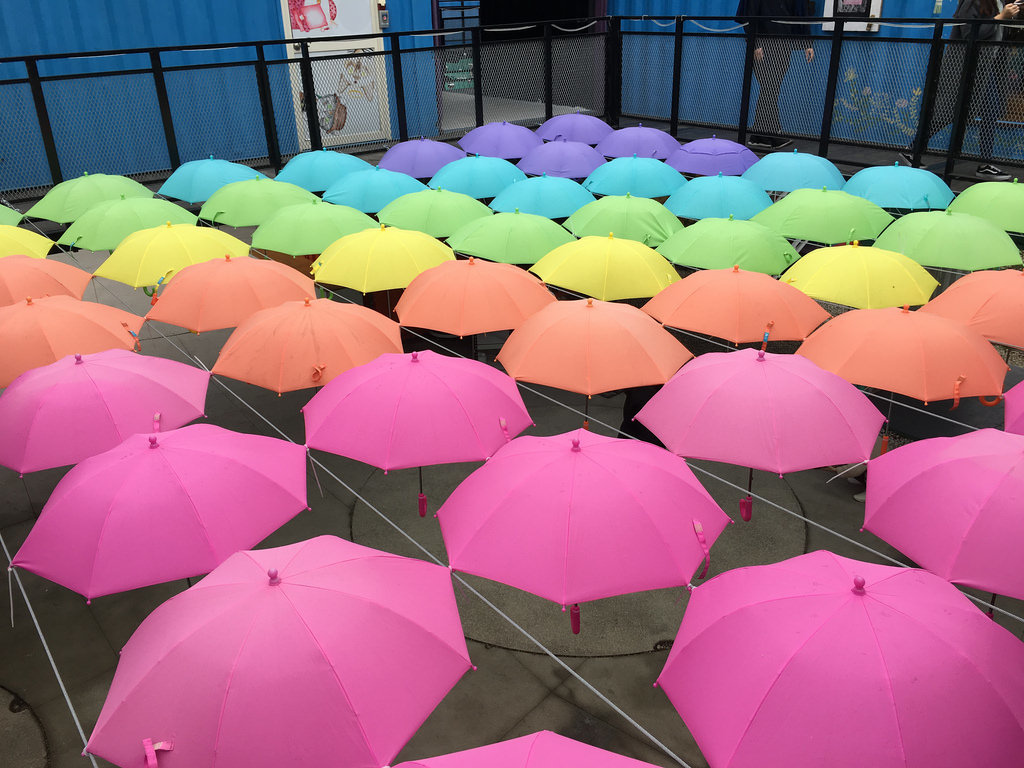 附近的集盒KUBIC貨櫃市集平常日也只有零星幾個遊客,最近多了彩色的雨傘(如首圖)。每次進到這個做乾燥花的小店都覺得很溫馨、很漂亮。