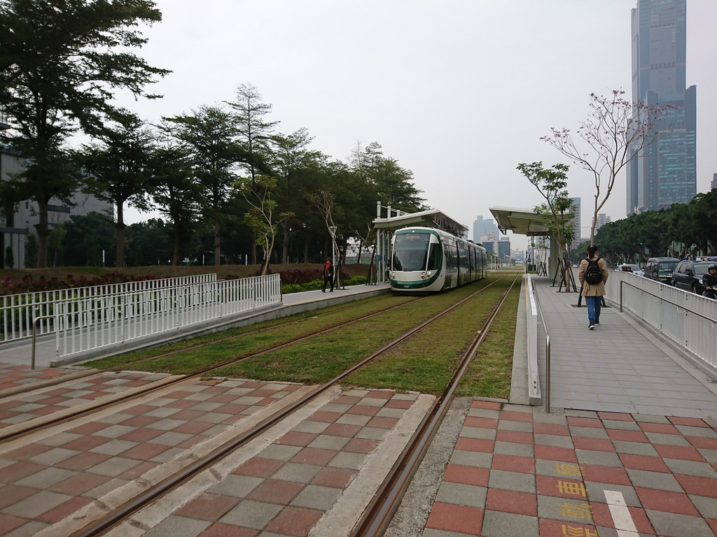 鍾小美沒搭過輕軌,帶她坐一小段到駁二走走。
