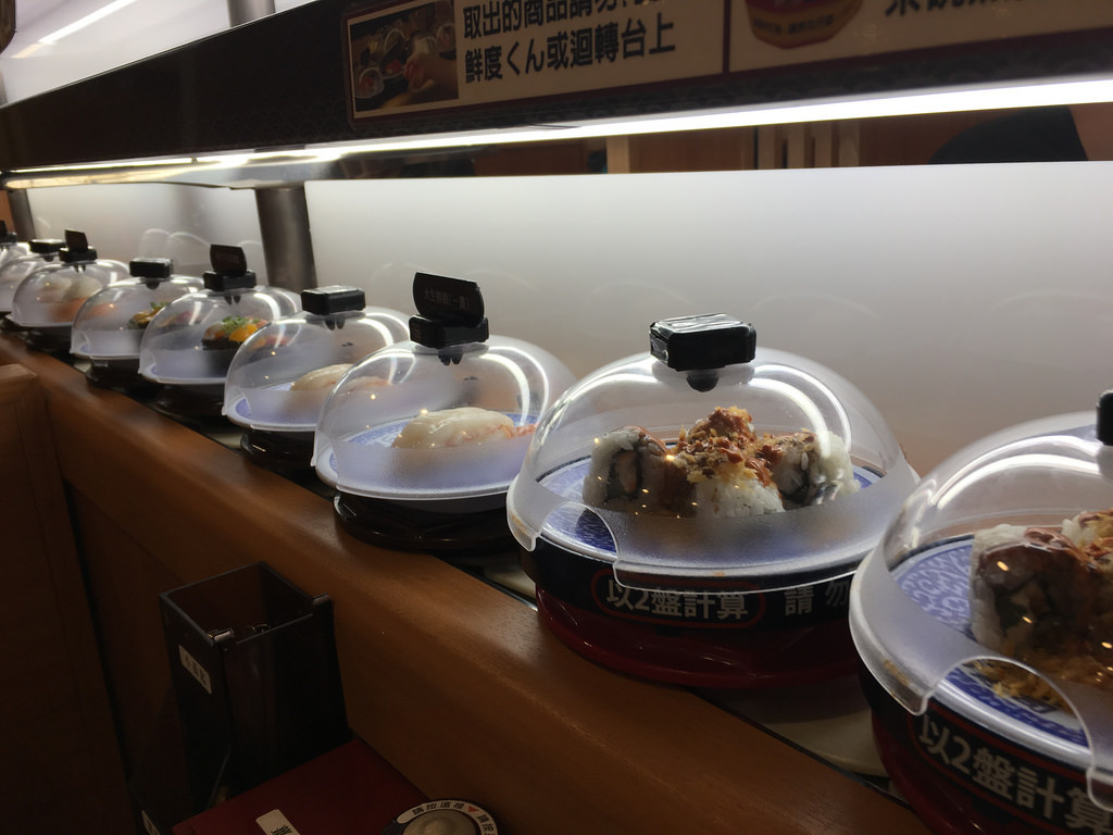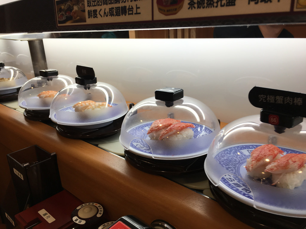 逛百貨公司可以順便買鍾小美愛的方師傅麵包,所以到了漢神巨蛋。每次經過都在排隊的くら寿司,今天完全不需要排隊就進來了。くら寿司基本是一盤40元,吃5盤可以玩一次遊戲,但我們沒有抽到獎。可惜菜色如果能再多樣些更好,讓我想起去年去沖繩美國村附近吃的 グルメ迴轉壽司市場 ,グルメ迴轉壽司市場大勝。