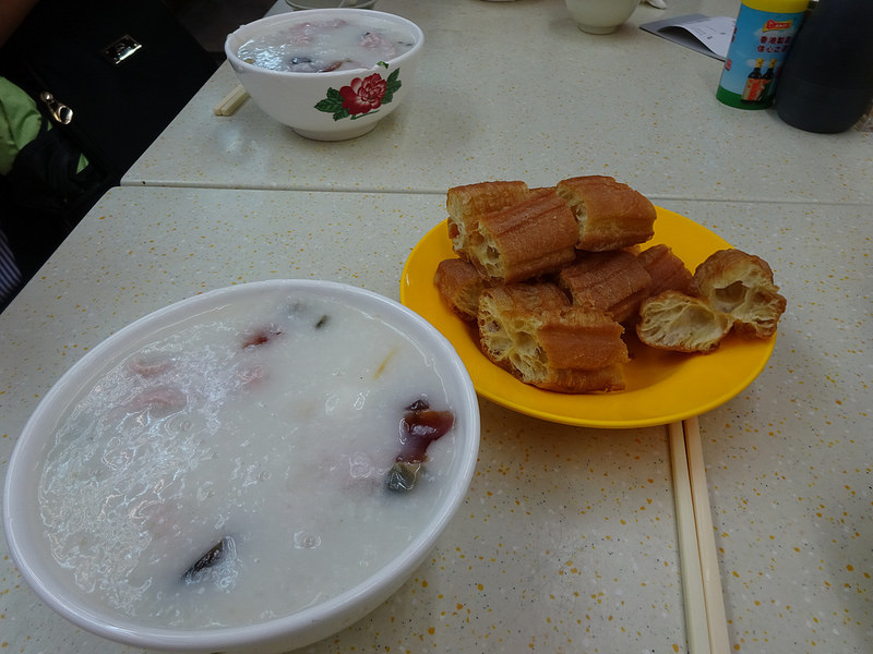 第二天睡飽飽才出門吃早餐,來到旺角的「富記粥品」吃粥囉!香港、澳門的粥很好吃又很豐盛,粥已不見一顆顆的米粒,取而代之的是粥的濃厚與豐富的配料。