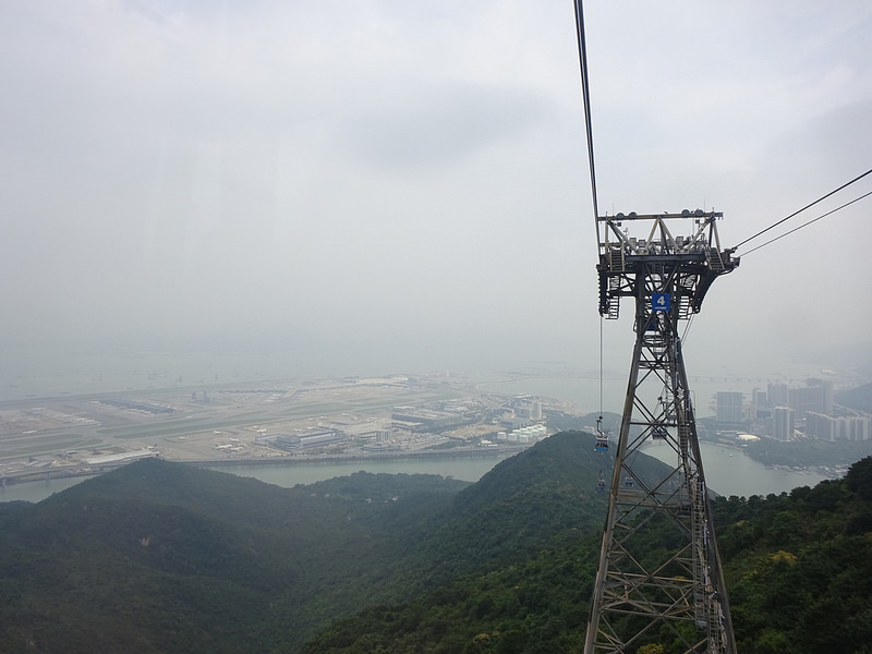 搭乘纜車可俯瞰大嶼山的風景,還可看到機場與港珠澳大橋。