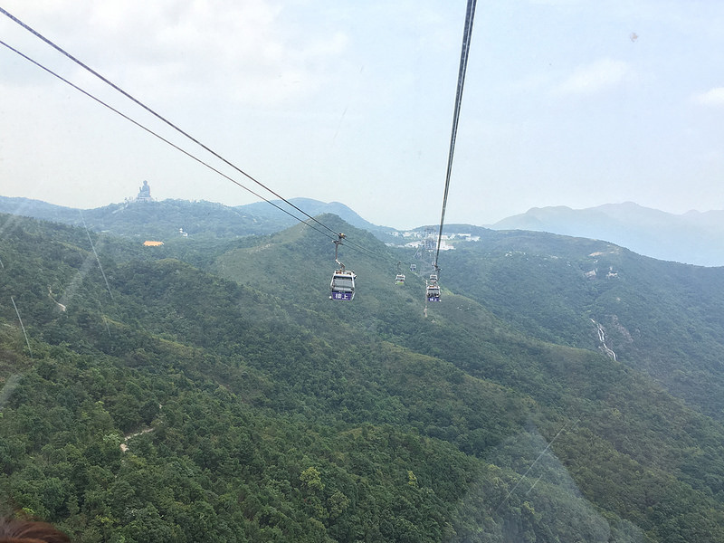越過了好幾個山頭,看見大佛出現在眼前,坐在山上的大佛有一種鎮壓整個山頭的氣勢。非常推薦來香港一定要搭昂坪纜車,絕對很值得。