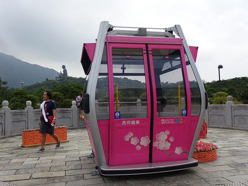 纜車站出來右手邊有一台粉紅色的纜車讓遊客拍照,背景是坐穩穩的天壇大佛。