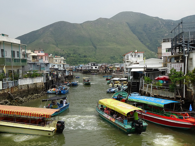 很快地就來到大澳漁村,不得不說,香港的司機開車都很快,明明是山路卻好像駕輕就熟、十拿九穩一樣地勇往直前(乖孩子不要學)。大澳漁村有東方威尼斯之稱,這裡的特色是密密麻麻的棚屋,傳統棚屋依漁船的概念設計,棚頭是漁民日常作息的地方,棚尾則用來曬鹹魚、海帶等,棚屋真的很小間,在這麼小的空間生活,應該很不容易吧,不過我想這裡的漁民應該很習慣這種生活方式了。