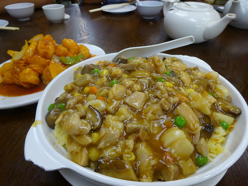看到隔壁桌吃這個好像不錯,問店員這是什麼,他說是福州炒飯,不過這炒飯怎麼這麼像燴飯?炒過的飯上面淋上拌炒勾芡的配料。
