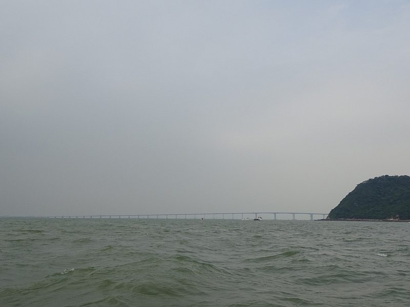 由於船身晃動拍照不易,乾脆放棄,用眼睛觀看就好。結果我們真的很幸運,看到兩隻白海豚兩度躍出海面,雖然只有短短幾秒而已。搭乘小艇的時間差不多35分鐘,比預計的20分鐘還來得久。