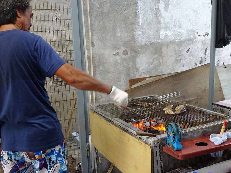 看完白海豚繼續在巷子裡逛,這幾顆正在烤的蛤蠣很大顆,不過店家把湯汁倒掉後刷上奶油,湯汁不是精華嗎?