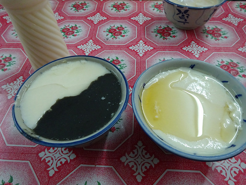 芝麻糊+豆腐花(左)、原味豆腐花(右),左邊那碗就是一個太極的概念。