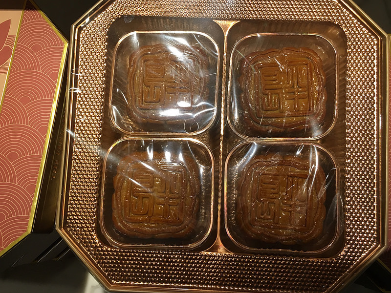 月餅蓋上「半島」二字,身價馬上不凡,下圖可能是蓮蓉口味之類的吧,沒特別記下來。
