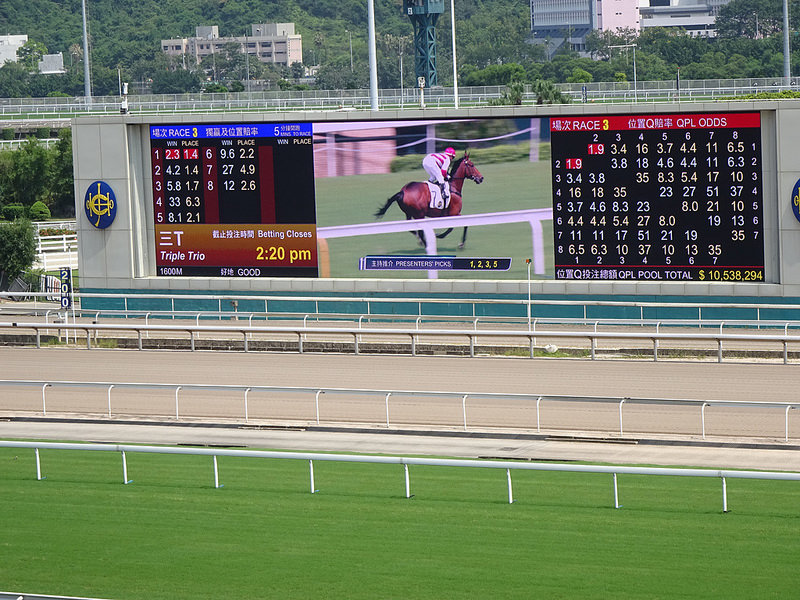 既然來了,當然要下注玩玩看,賭一注10元港幣,不過要到櫃檯買現金券(沒用完可退款),再用機器下注,不要擔心,旁邊會有人協助。要是在櫃台窗口直接下注,則是一注20元港幣。現場可以看到很多大叔大嬸拿著報紙研究,我們這種只是玩票性質的,賭一注體驗一下而已。現場看賽馬真的很刺激,全場熱血沸騰啊!第一和第二名通常只是差半個或一個馬頭而已。