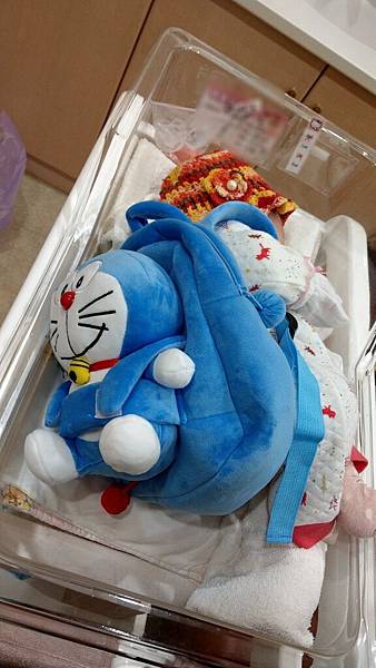 月子中心阿姨們不知道哪來的哆啦A夢背包,成了拍照小道具,超萌的!