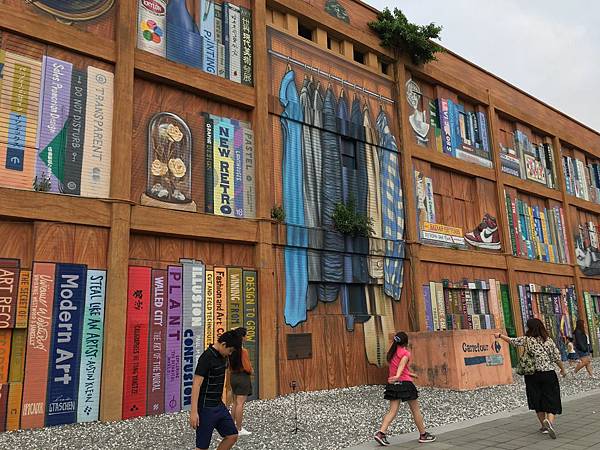 迷迷村最有名的打卡地點應該是這個巨型書櫃和衣櫃了吧!用五顏六色的彩筆畫出各式各樣的物品,咦?其中還包括石膏像、NIKE球鞋和一隻貓![]()