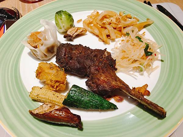 ▲烤蔬菜、孜然羊排、泰式青木瓜絲、素食燒賣等