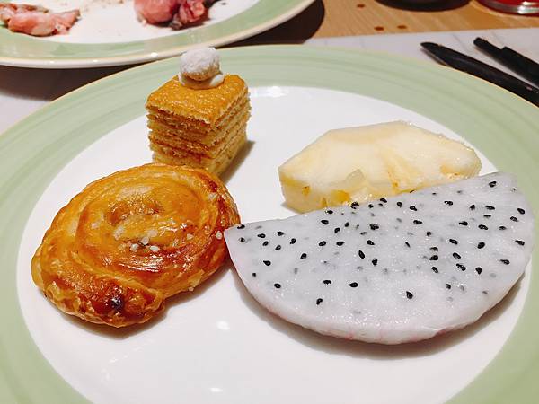 蛋糕、麵包、水果種類不多,拿了幾個搭配咖啡作為餐點的結束。