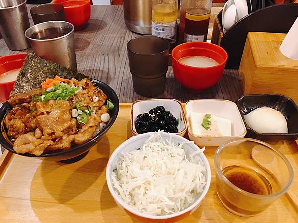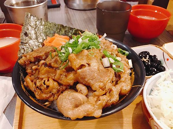 Juno點了一個算是入門款的炙燒安格斯黑牛丼飯,切成薄片的牛肉淋上鹹香的醬汁,可以多扒幾碗飯,肋眼牛排也很和白飯很搭。