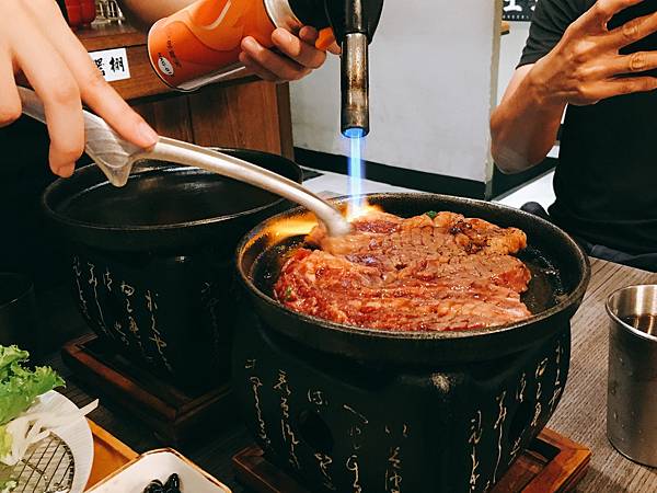 厚切和牛燒肉和肋眼牛排店員會幫忙炙燒,還會用剪刀剪成一塊一塊方便入口。和牛的油花分布均勻,看起來很漂亮,吃起來大概就是大家所講的入口即化。