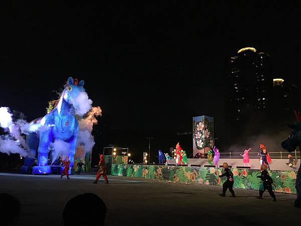 除了唱跳,還加入火舞、特技,搭配燈光音效(姪女覺得聲音太大聲,我也覺得有時候音量過大),算是小而精緻的表演。不過有感覺大家真的很期待看紙風車劇場的戲劇,疫情把大夥兒都悶壞了。